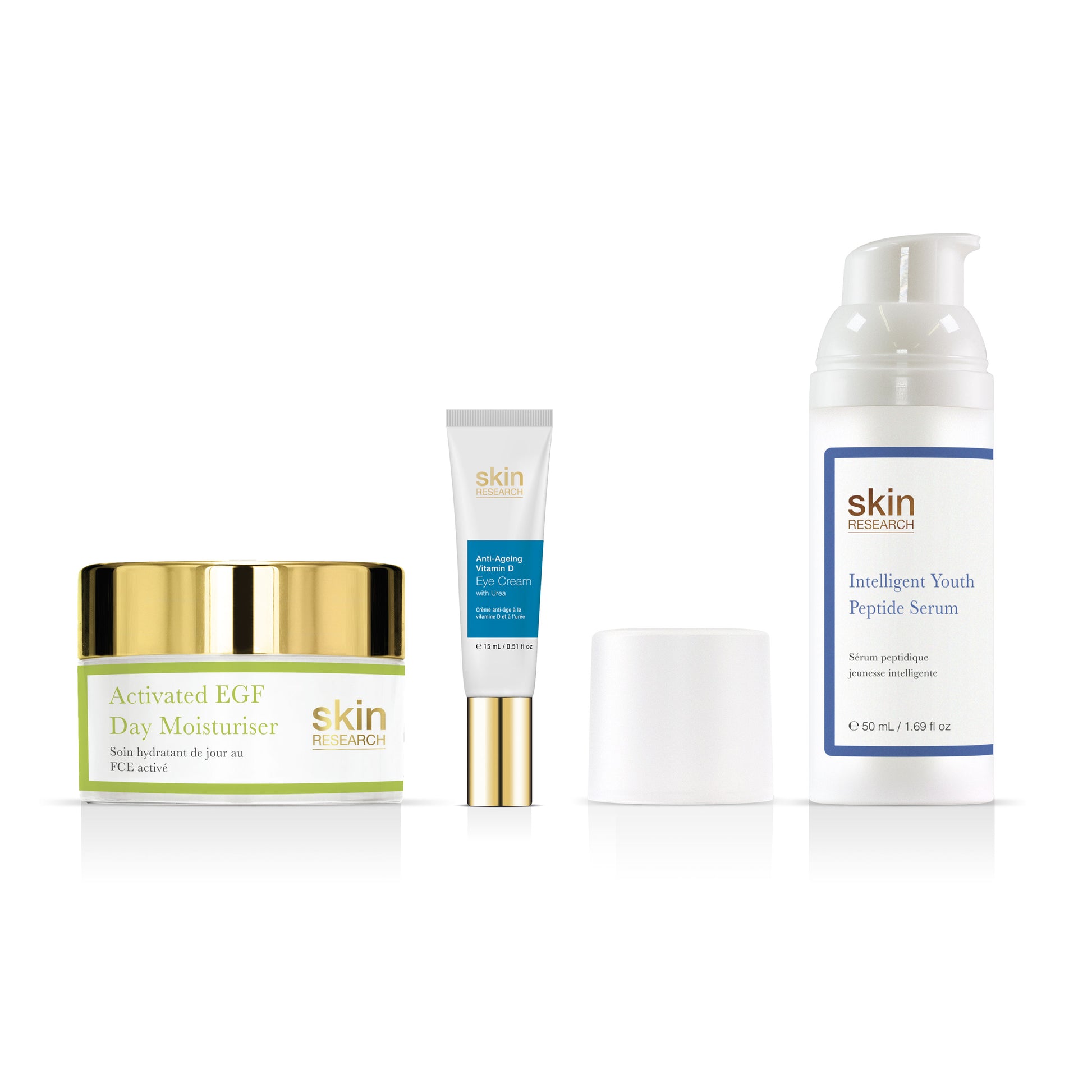 Intelligent Youth Peptide - Serum - 60ml + Vitamin D - Eye Serum 15ml + Activated EGF day moisturiser 50ml