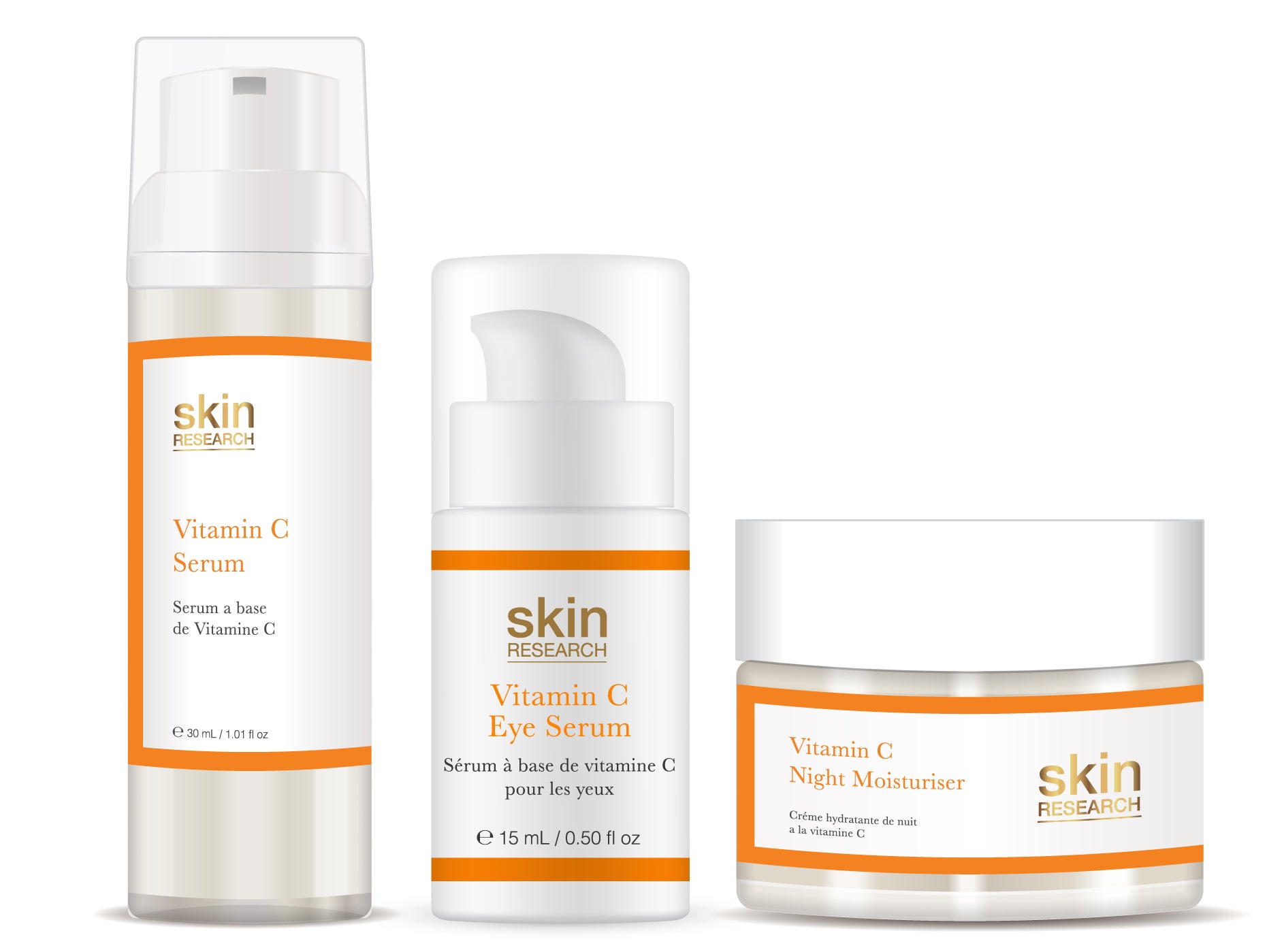 K3 Skin Research Vitamin c night moisturizer + eye serum + facial serum